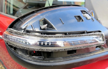 Reassembly was the reverse of disassembly, as it often is. Place the indicator repeater in place, being careful to align it with the mirror housing especially at the point that it reaches the edge. It’s then necessary to offer up the cowl, fitting the bottom first and while keeping the indicator in place. Then carefully aligning the top of the cowl while spreading it also towards the car body end to ensure that it aligns with all its fixing lugs.This reassembly requires patience and careful alignment to ensure a proper fit. When satisfied, press all the edges home.