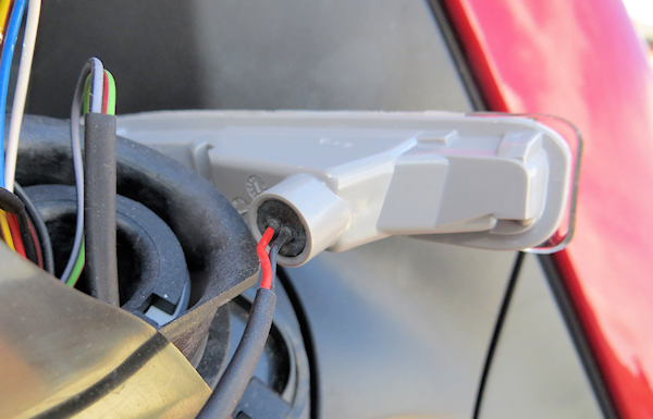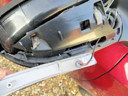 Having gained access to the inside of the mirror housing, the indicator repeater was accessible. It wasn’t fixed but held in place by the cover itself. The electrical connector was behind a rubber weatherproof seal and consisted of a white nylon plug and socket. There was only one way to fit it so be careful on reassembly.