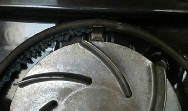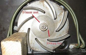 The centre attachment screw bracket was also slightly misaligned and had to be eased gently to get the screw in the hole. Having fastened the element to the back of the oven, it was then time to replace the fan. It was easier to tighten the fan nut (anticlockwise don’t forget) if a block of wood was used to stop the fan rotating -