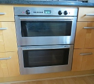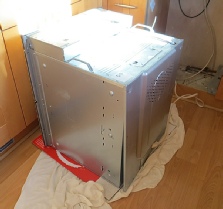 In fact this misalignment, and the need to wiggle the ends of the element back through the mounting holes, meant that it was easier in the end to remove the back of the oven to access the connecting wires from the rear. Removing the oven from the kitchen unit was easy -