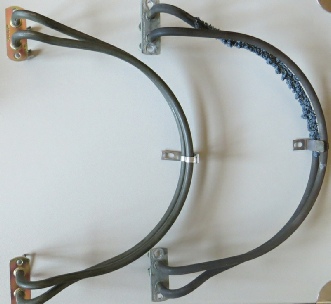 There are many sources of replacement element and, as always, ebay sells lots. I bought a reasonably cheap version for about £8 (2014). The new and the old, clearly burnt out, are shown on the right.